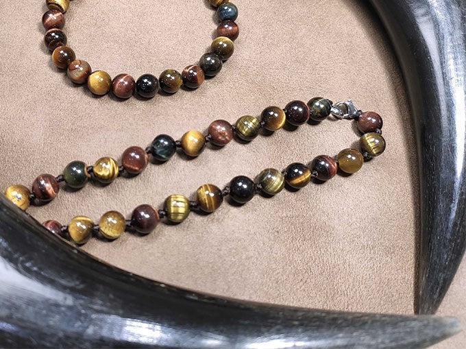 Bracelet en pierre naturelle d'œil de tigre, œil de taureau et œil de faucon, disponible en 3 tailles: 6mm, 8mm, 10mm ou 12mm.