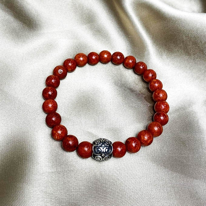 Bracelet en pierre naturelle de racine de corail avec un élément décoratif en acier inoxydable blanc*