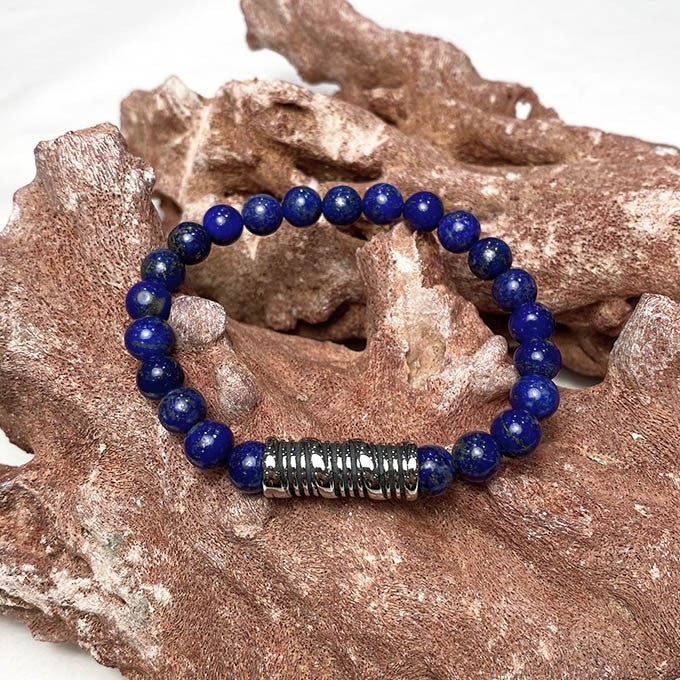 Bracelet pour homme en pierre naturelle( lapis) avec un élément décoratif en acier inoxydable blanc*