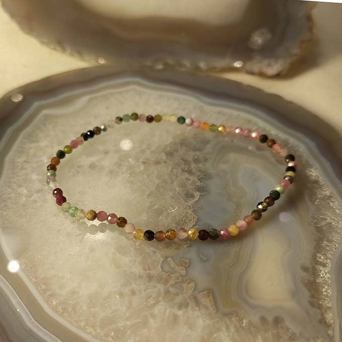 Bracelet en pierre naturelle de tourmaline facettée, disponible en 2 tailles: 2mm ou 3mm.
