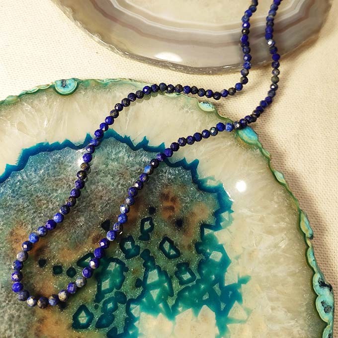 Collier Lapis Facettée Avec Mousqueton En Acier
