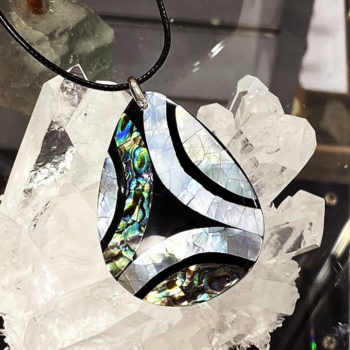 Collier Pendentif Goutte En Nacre Avec Cordon Noir