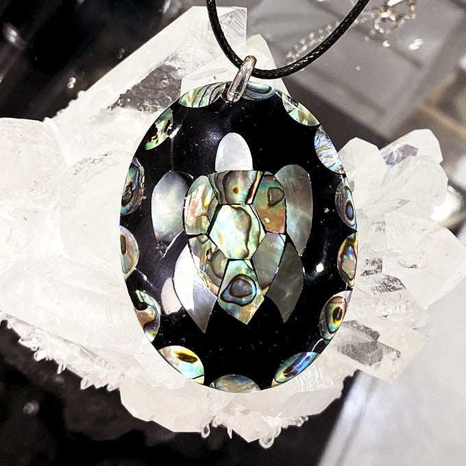 Collier Pendentif Tortue En Nacre Avec Cordon Noir