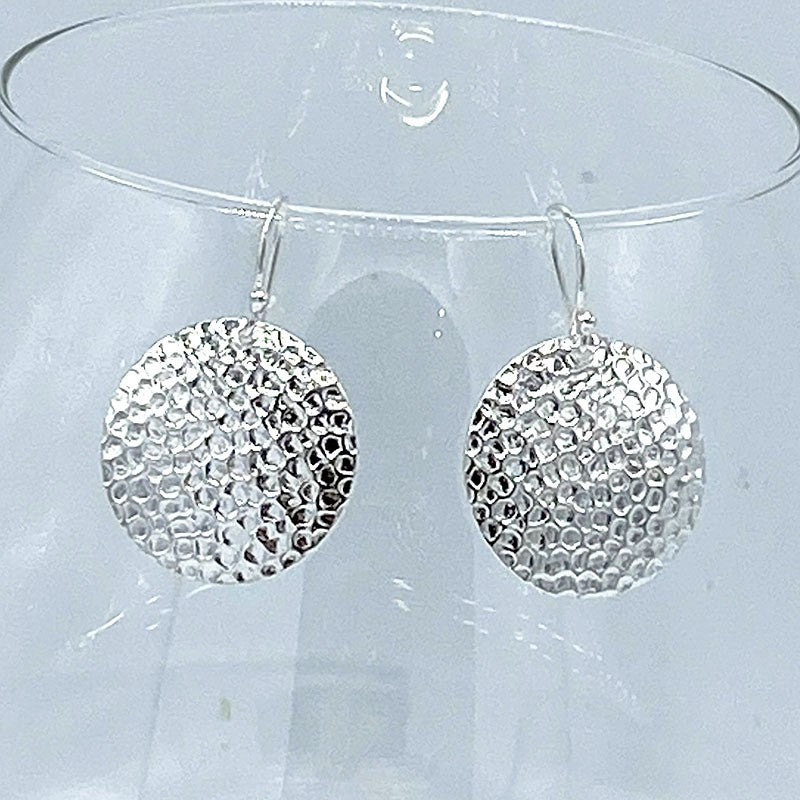 Boucles d'oreilles faites d'argent 925 massif martelé.