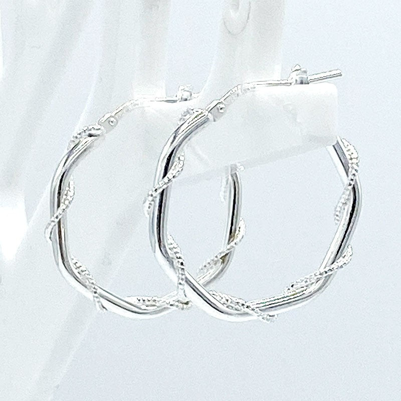 Boucles D'Oreilles Argent 925 Massif Créoles Torsadées