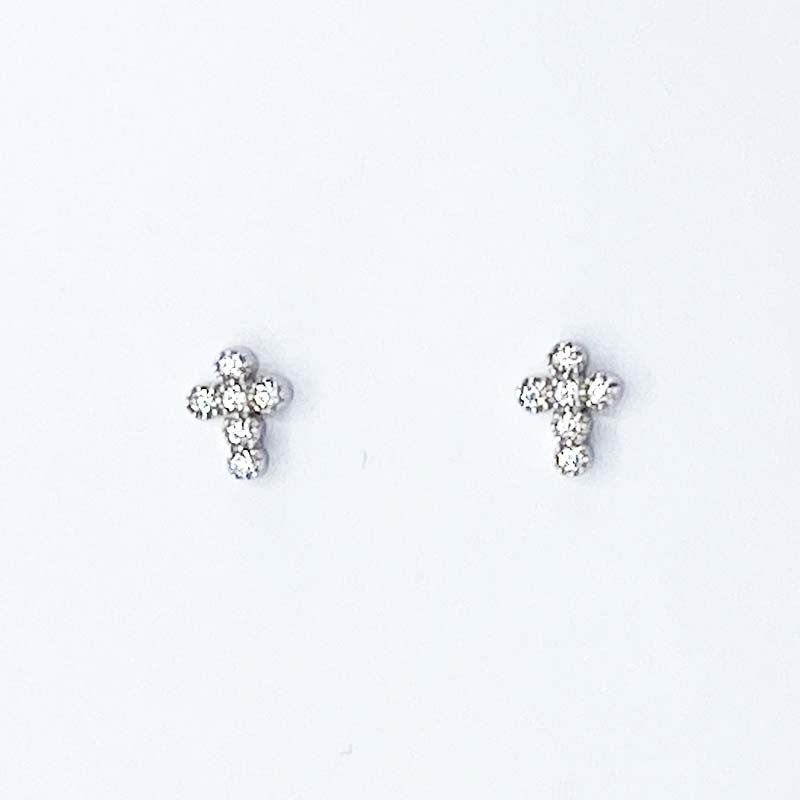Boucles d'oreilles en forme de croix, faites d'argent Rhodié et d'oxyde zirconium.
