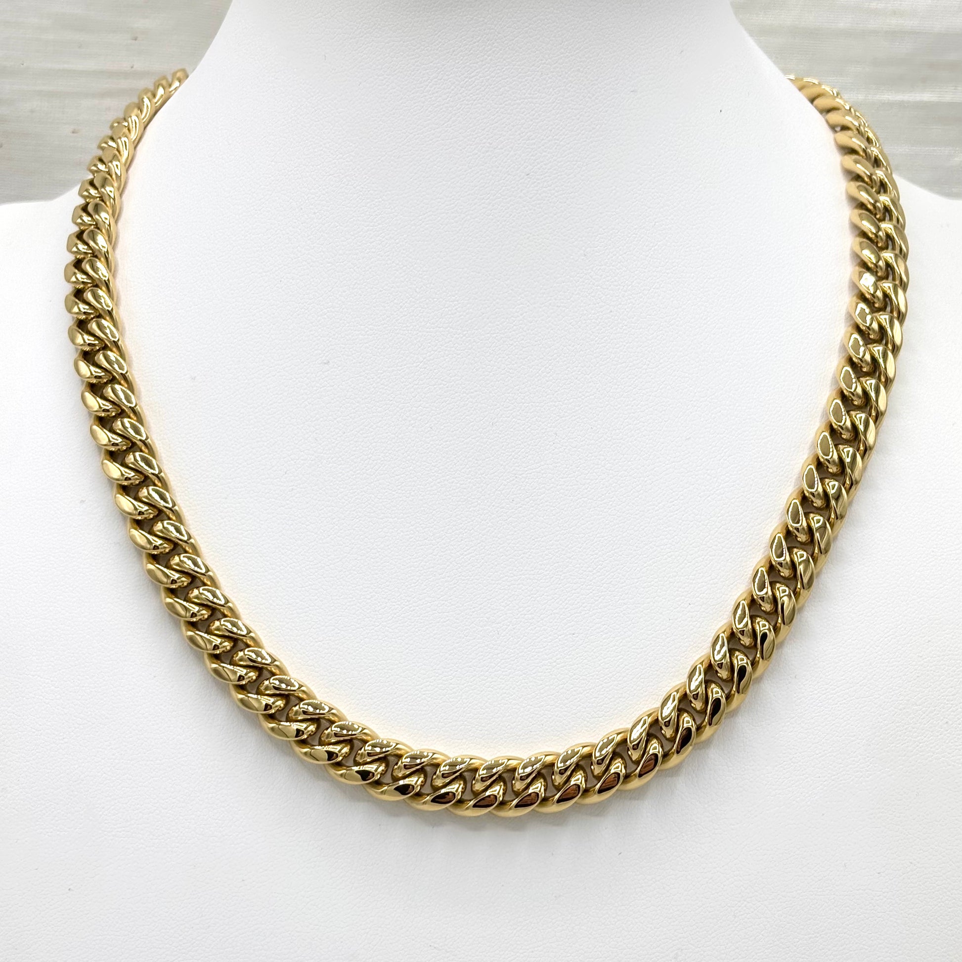 Collier chaine gourmette en acier inoxydable dorée, disponible en plusieurs longueur et plusieurs tailles.