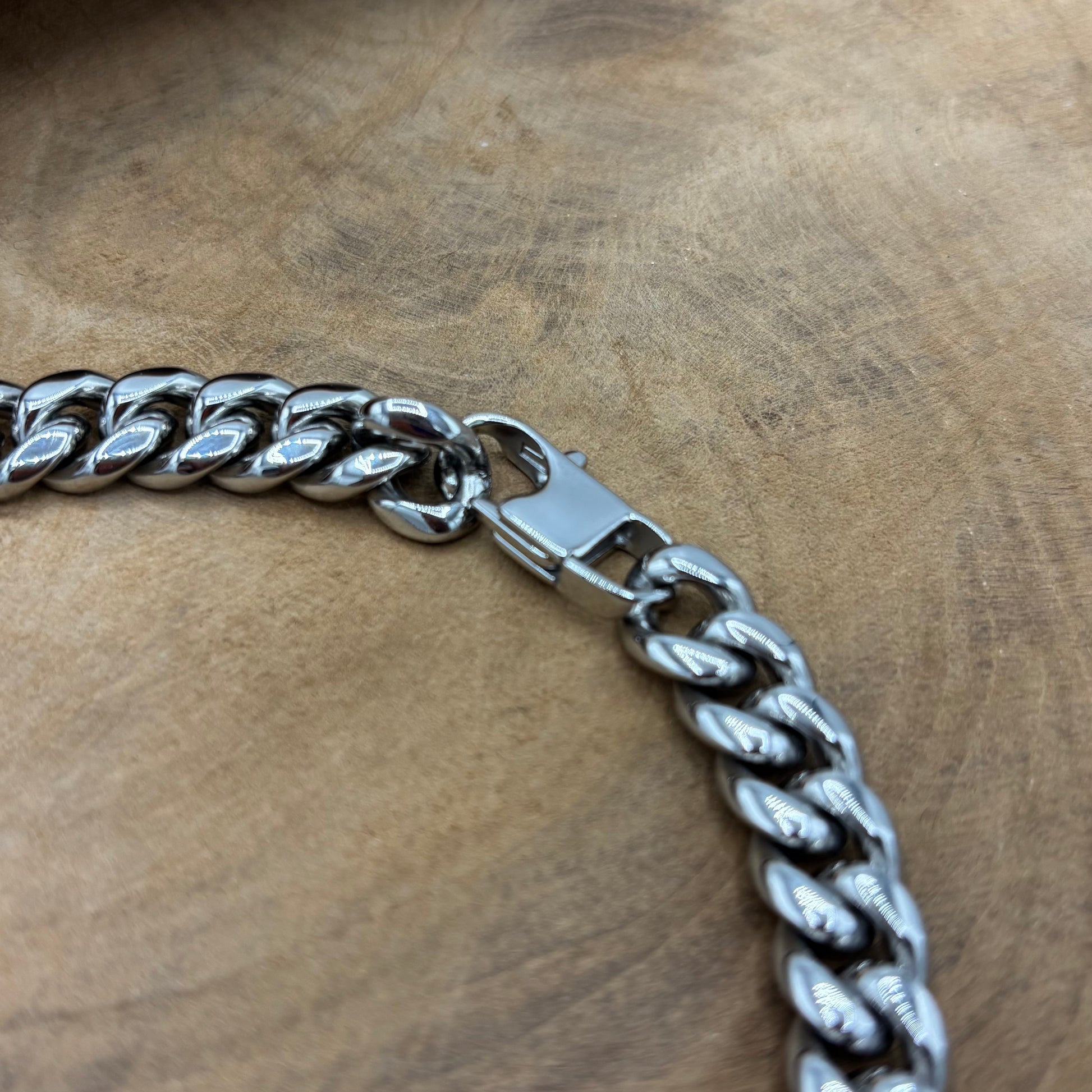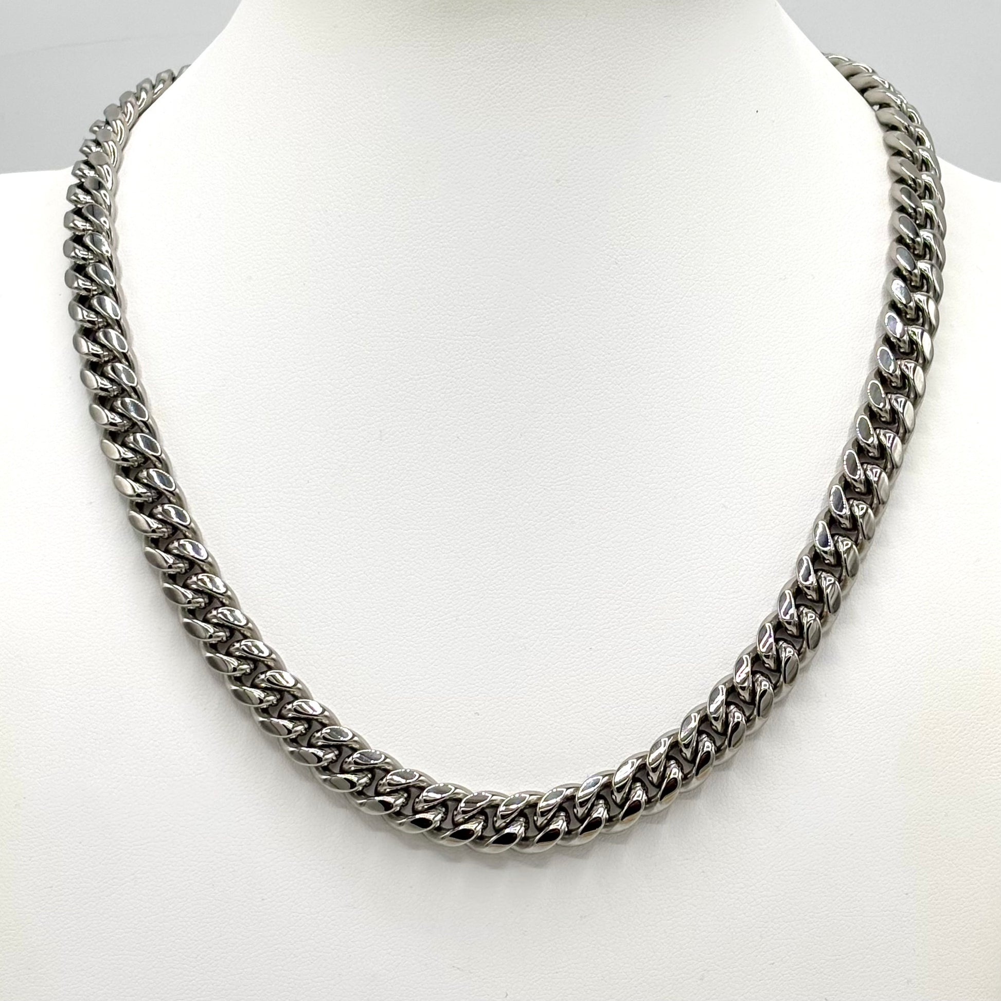Collier chaine gourmette en acier inoxydable blanc, disponible en plusieurs longueur et plusieurs tailles.