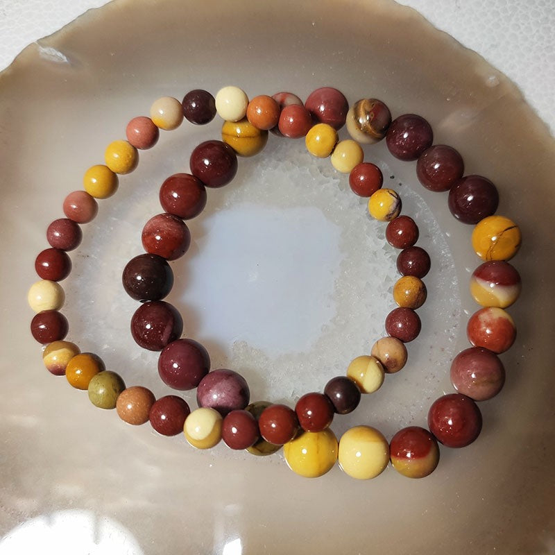 Bracelet en pierre naturelle de jaspe mookaite, disponible en 2 tailles: 6mm ou 8mm.