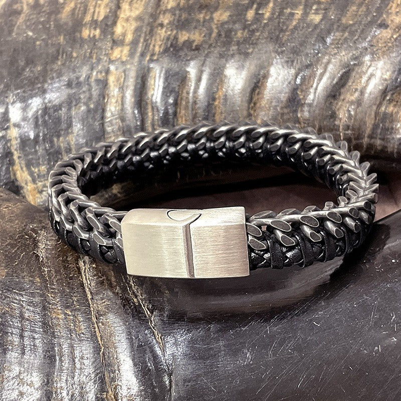 Bracelet Homme Acier En Cuir Véritable Trassé