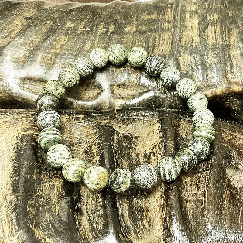Bracelet en pierre naturelle de jaspe zèbre vert, disponible en 2 tailles: 6mm ou 8mm.