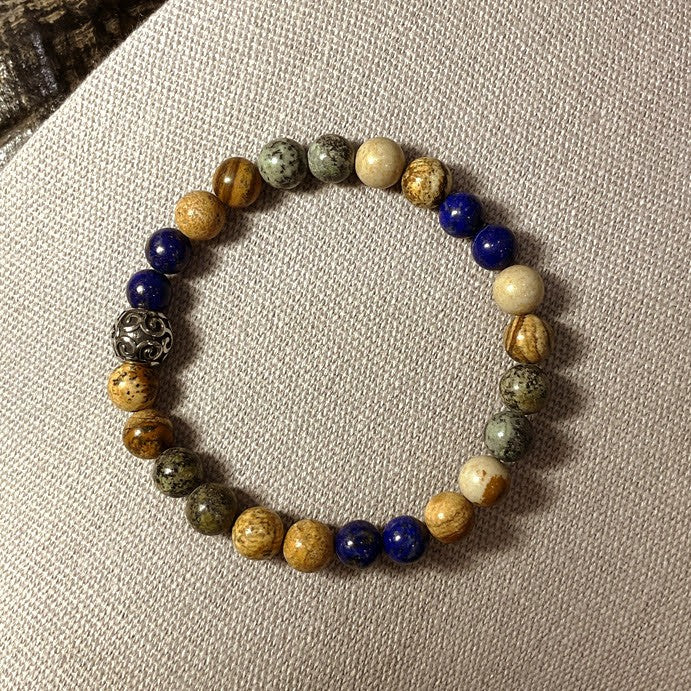 Bracelet pour homme en pierre naturelle (jaspe paysage, turquoise africain et lapis)