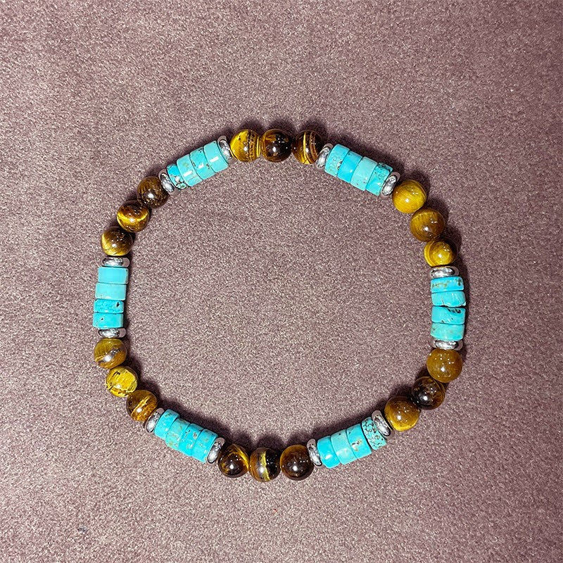 Bracelet en pierre naturelle en 6mm avec des rondelles en acier inoxydable blanc.