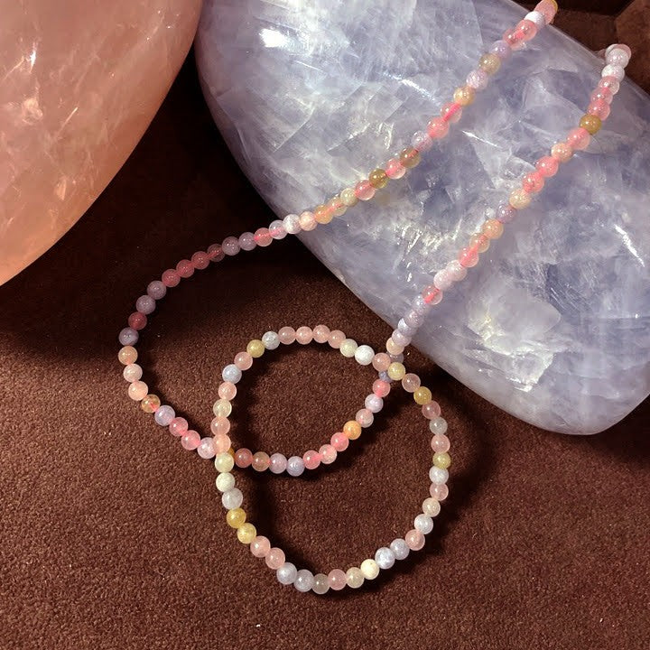 Collier Et Bracelet Pierre Naturelle Morganite 4Mm