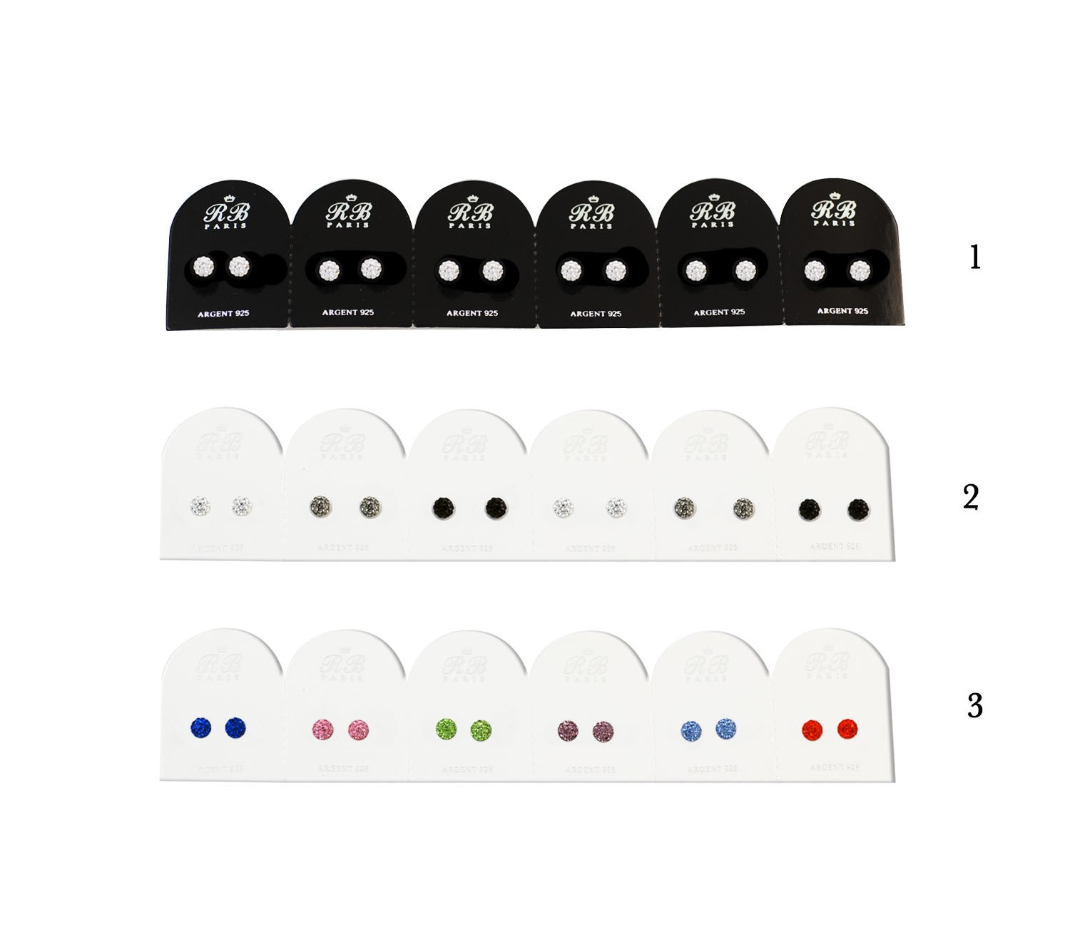 Boucles d'oreilles faites en argent 925 avec des strass, disponible en 3 modèles.