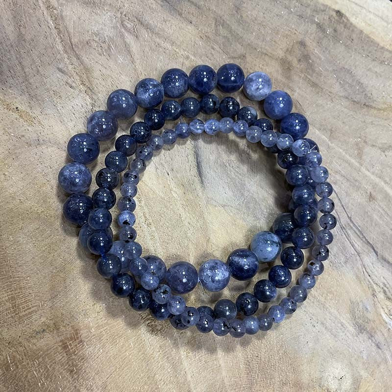 Bracelet en pierre naturelle d'iolite, disponible en 3 tailles différentes: 4mm, 6mm et 8mm.
