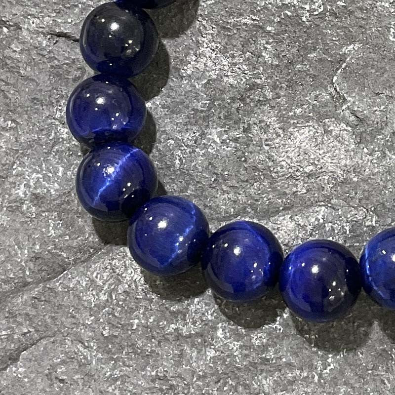 Bracelet en pierre naturelle d'oeil de tigre bleu, disponible en 3 tailles différentes: 6mm, 8mm ou 10mm