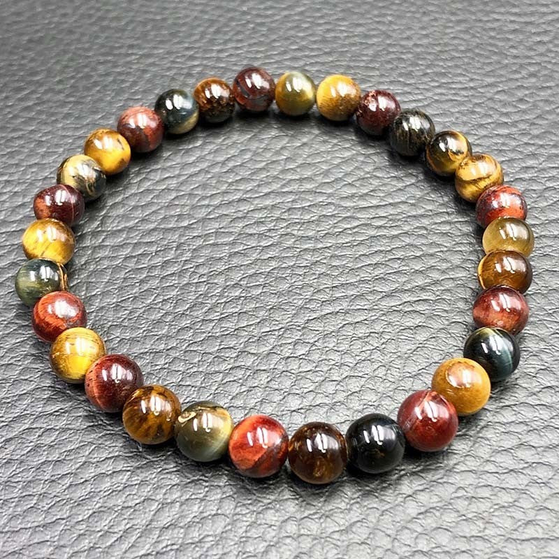 Bracelet en pierre naturelle 3 yeux d'œil de tigre, œil de faucon et œil de taureau, disponible en 8mm.