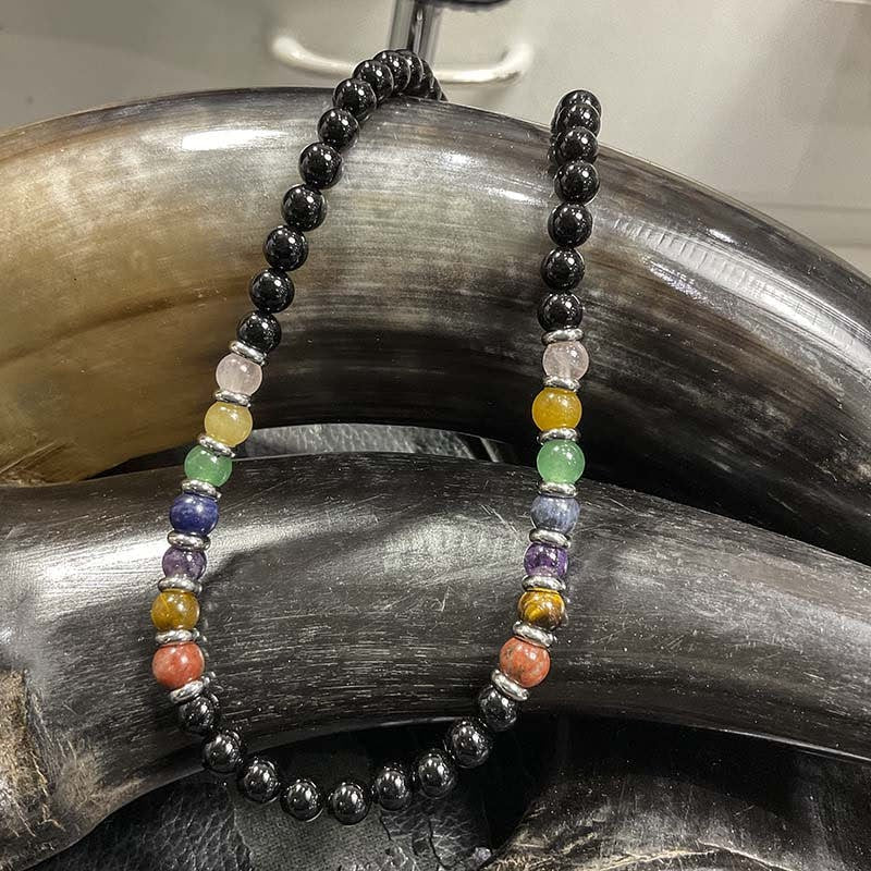 Collier Chakra en pierres naturelles avec des boutons, fermoir et rallonge de 3 cm en acier inoxydable, disponible en 2 longueur.