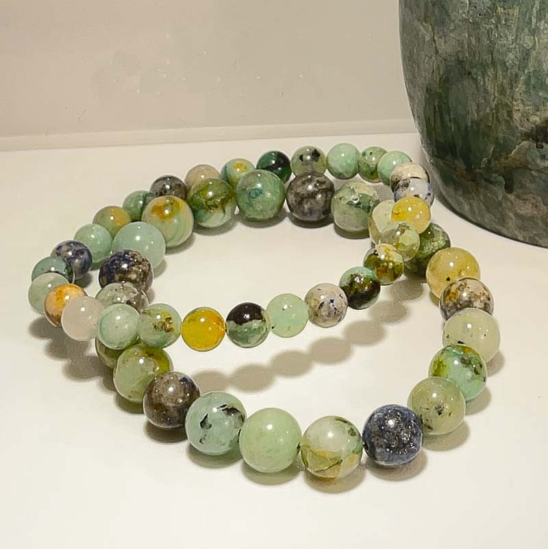 Bracelet en pierre naturelle de chrysocolle, disponible en 2 tailles: 6mm ou 8mm.