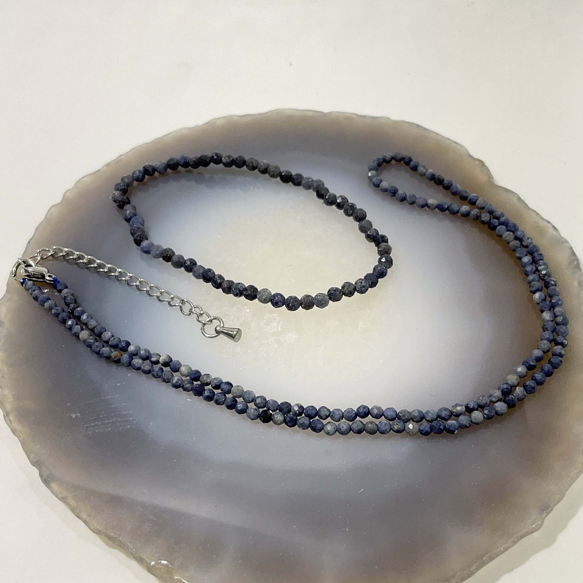 Bracelet et collier en pierre naturelle de saphir avec un fermoir en acier inoxydable, disponible en: 3mm ou 4mm.
