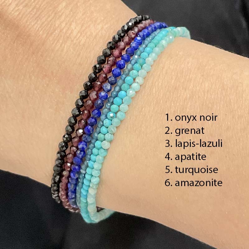 Bracelet câblé en pierre naturelle de 3mm avec un fermoir en acier inoxydable blanc, disponible en 6 modèles.