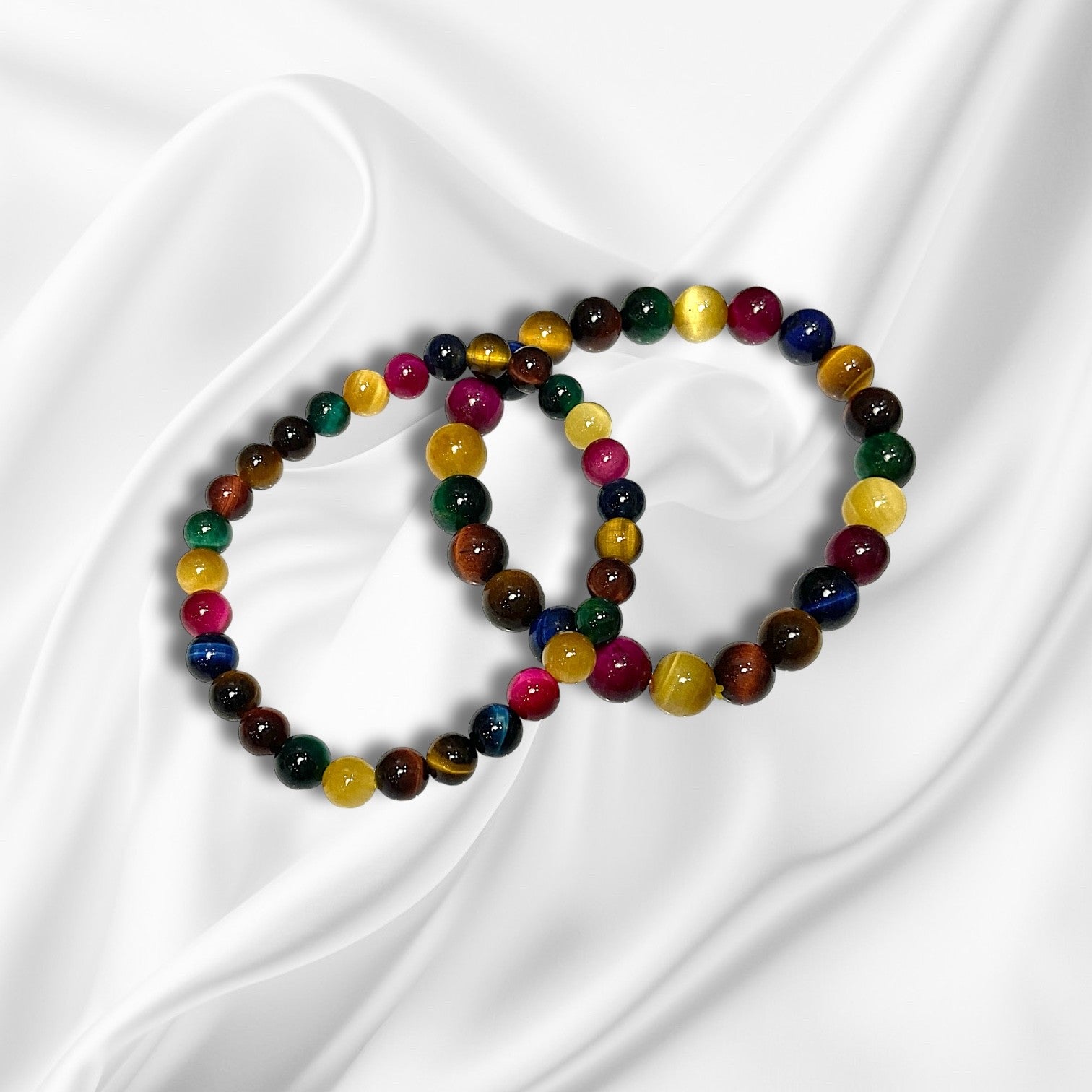 Bracelet en pierre naturelle d'oeil de tigre teinté, disponible en 2 tailles différentes: 6mm ou 8mm.