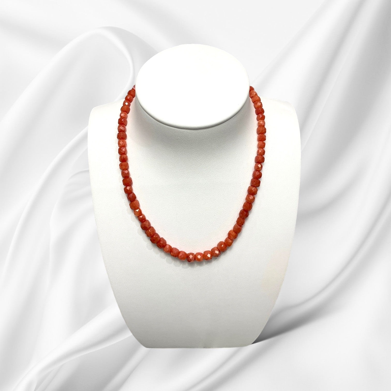 Collier en pierre naturelle de cornaline avec un fermoir en acier inoxydable.