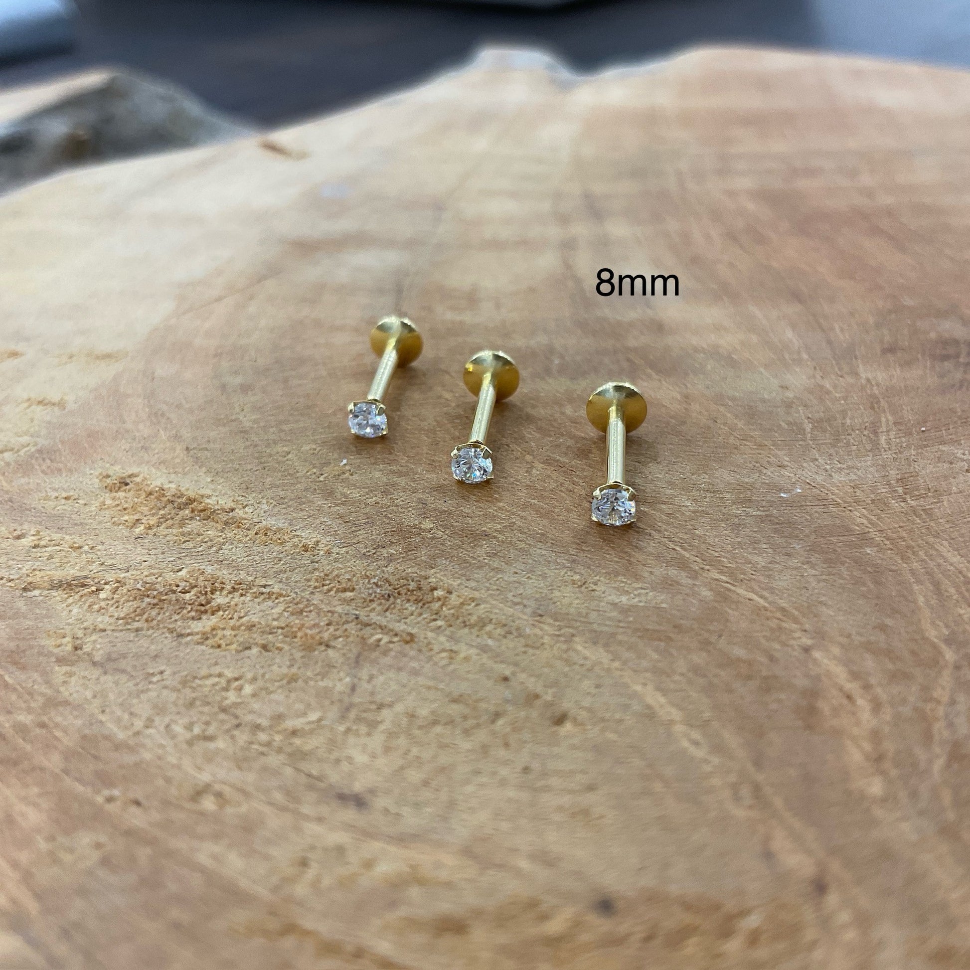 Piercing labret doré vissage interne, disponible en plusieurs taille.