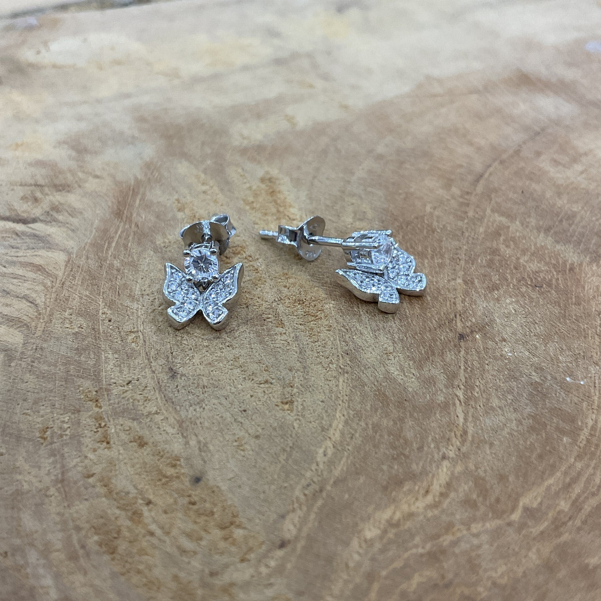 Boucles d'oreilles faites en Argent Rhodié CZ en forme de papillon.