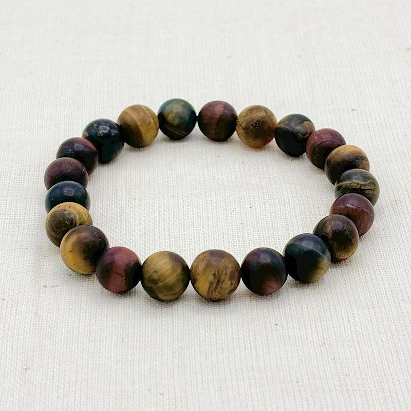 Bracelet aux 3 yeux en pierres naturelles mates: oeil de tigre, oeil de taureau et oeil de faucon.