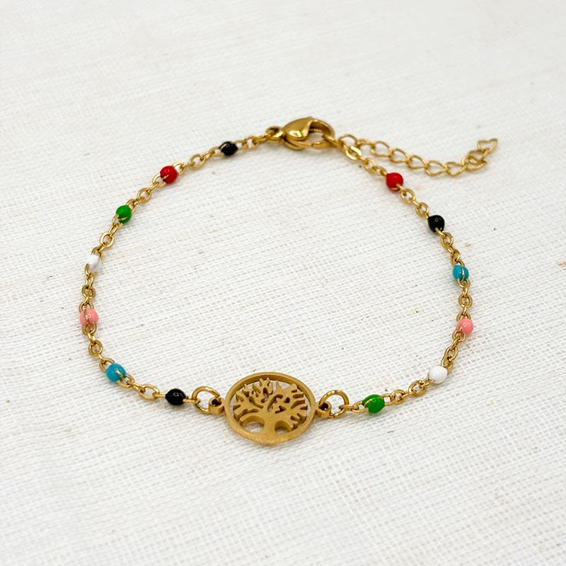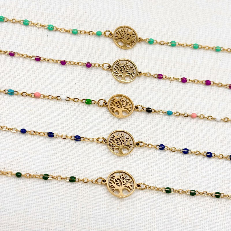 Bracelet arbre de vie acier inoxydable doré, disponible en 11 couleurs.