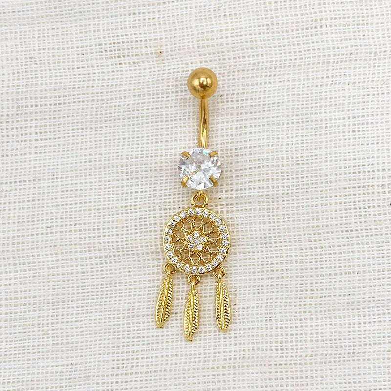 Piercing Nombril Attrape Rêve En Acier Inoxydable Doré