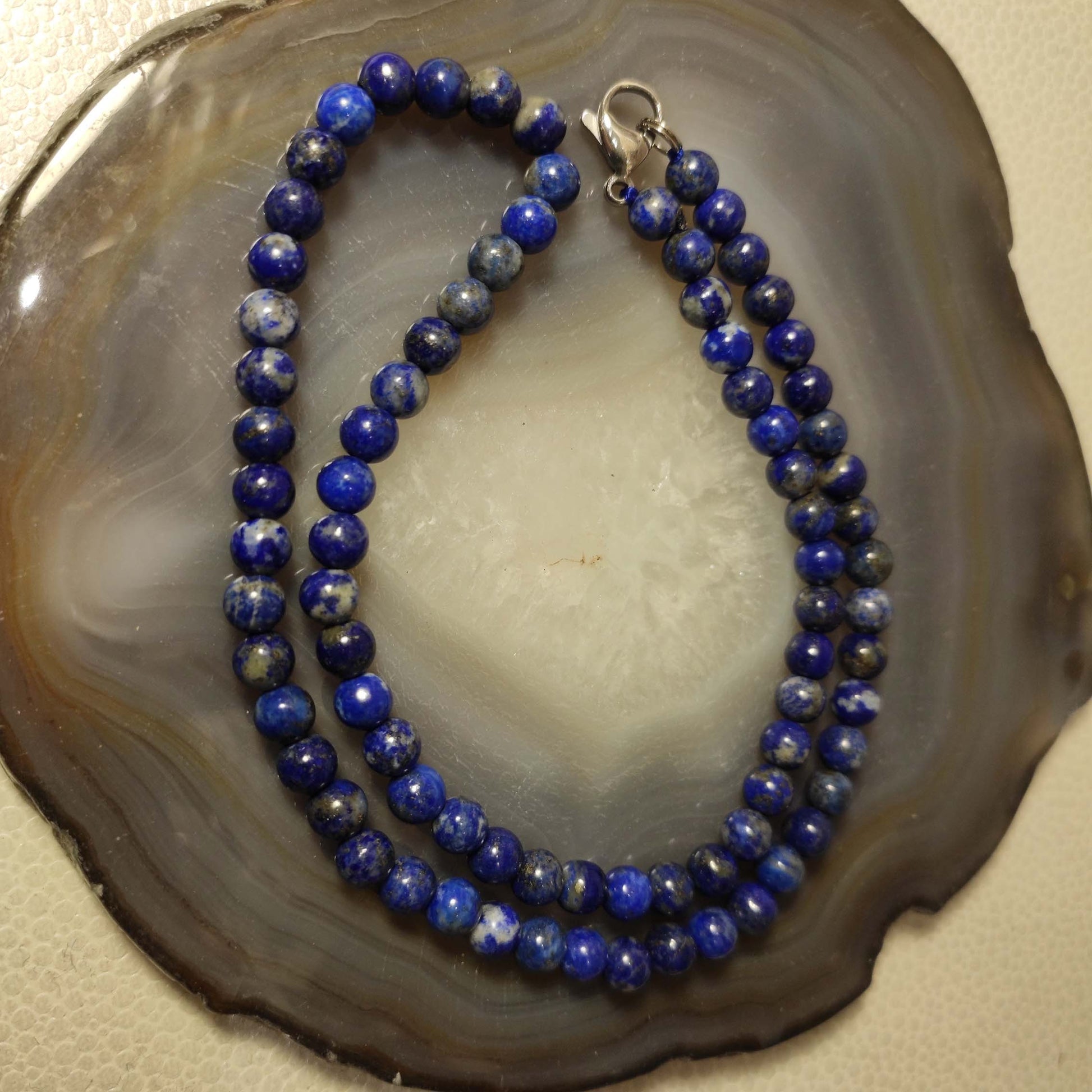 Collier fait de pierre naturelle de lapis-lazuli et d'acier inoxydable blanc, disponible en 4 tailles: 6mm, 8mm, 10mm et 12mm