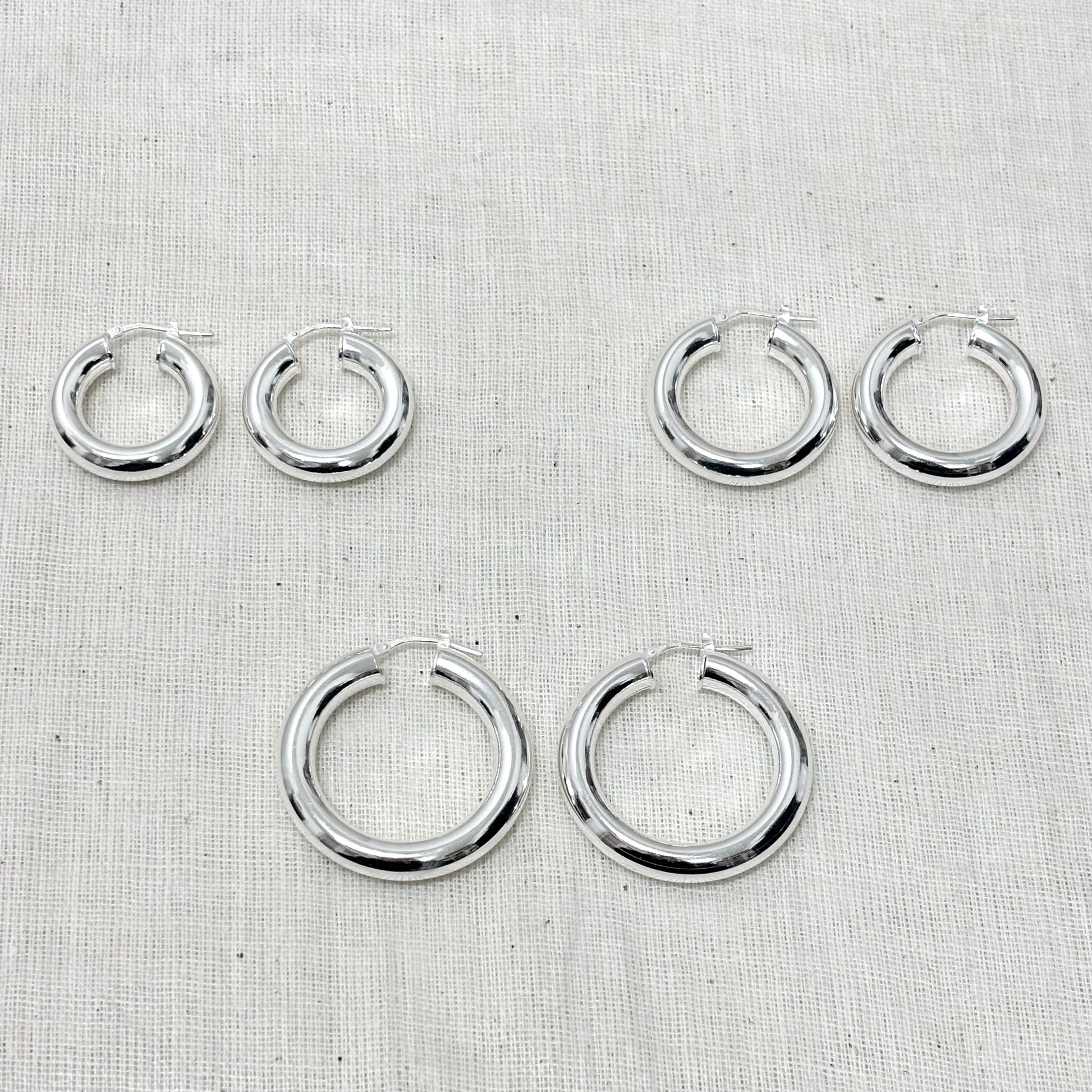 Boucles d'oreilles créoles en argent 925, disponible en plusieurs diamètre: 15mm, 20mm ou 25mm.