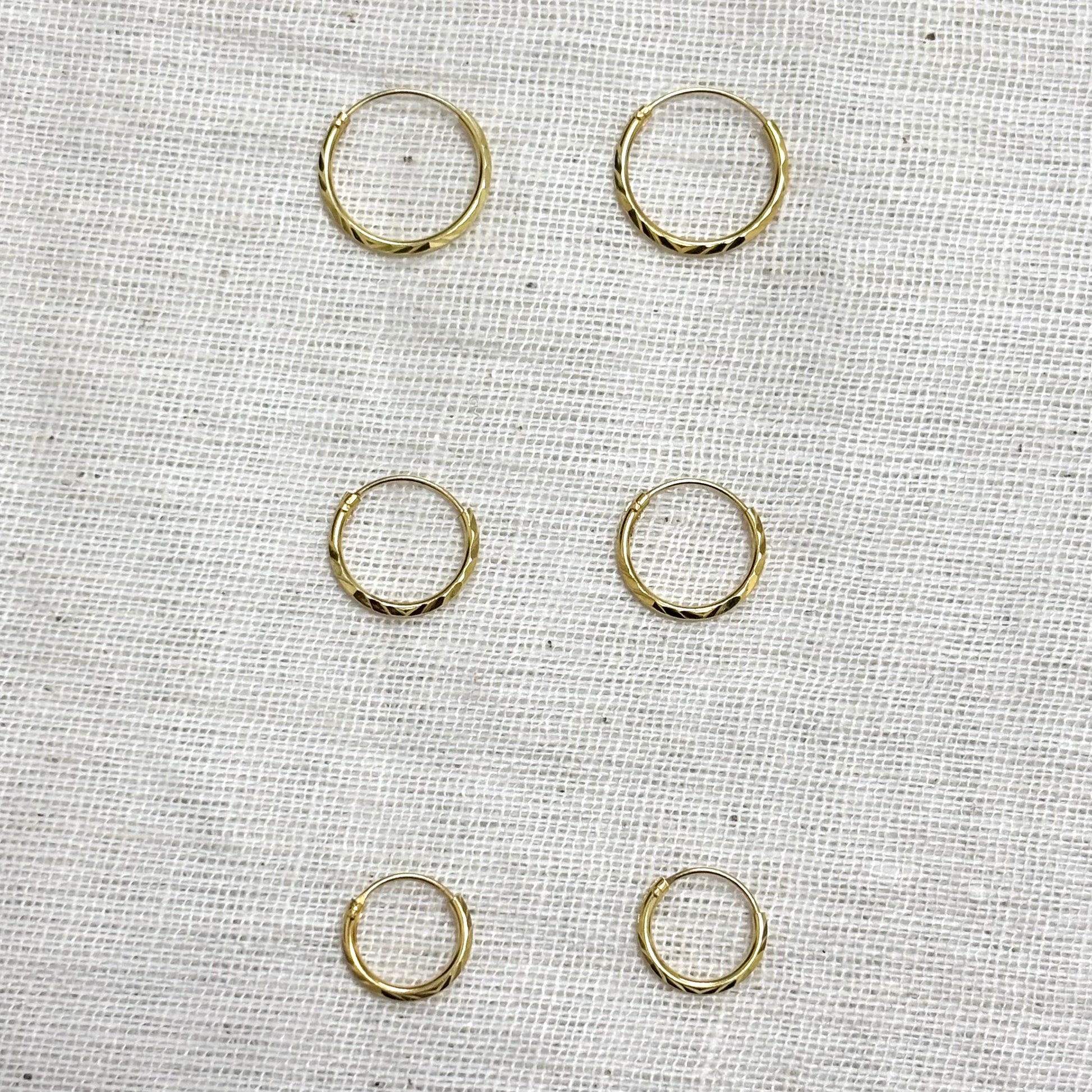 Boucles d'oreilles créoles fines en argent 925 doré, disponible en plusieurs diamètre: 10mm, 12mm ou 14mm.