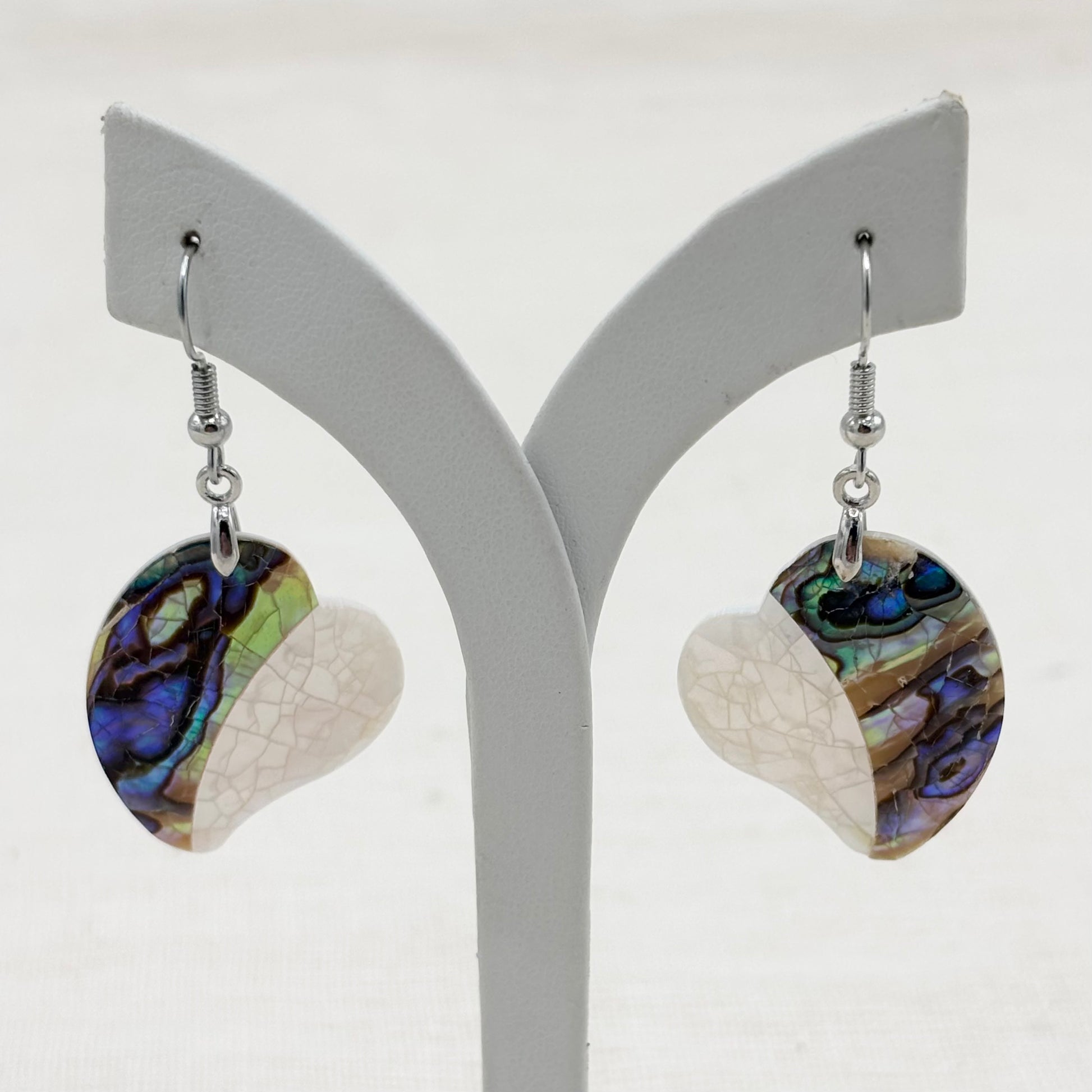 Boucles d'oreilles cœur en nacre abalone avec des crochets en laiton