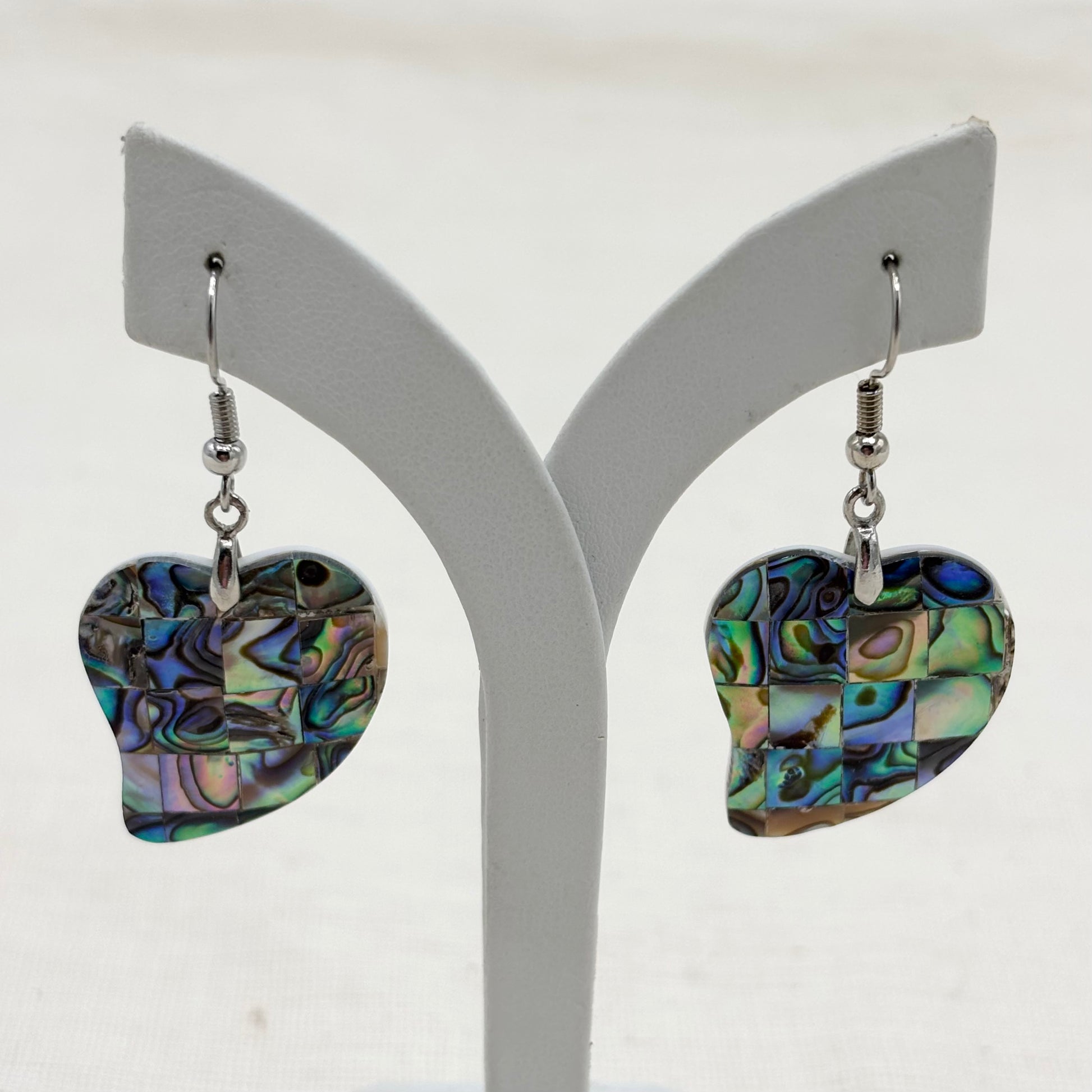 Boucles d'oreilles cœurs en nacre abalone avec des crochets laiton