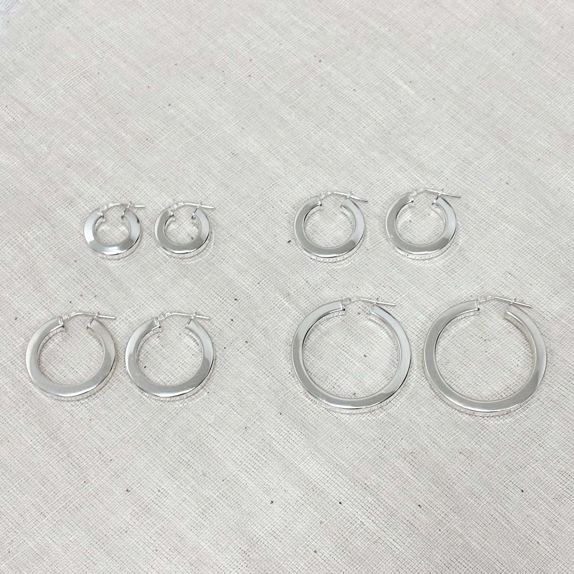 Boucles d'oreilles créoles en argent 925, disponible en plusieurs diamètre: 10mm, 15mm, 20mm ou 30mm.
