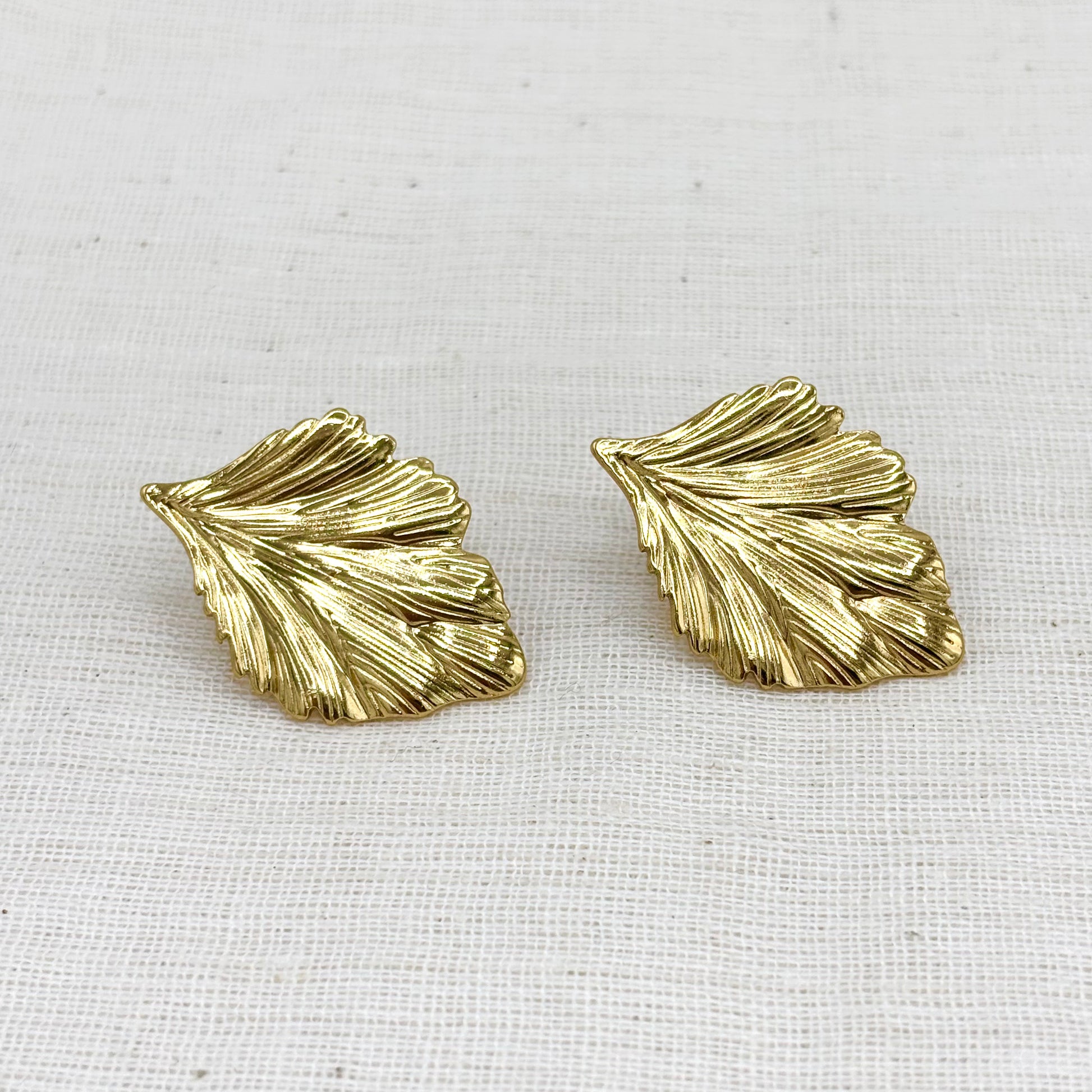 Boucles d'oreilles feuilles en acier inoxydable doré