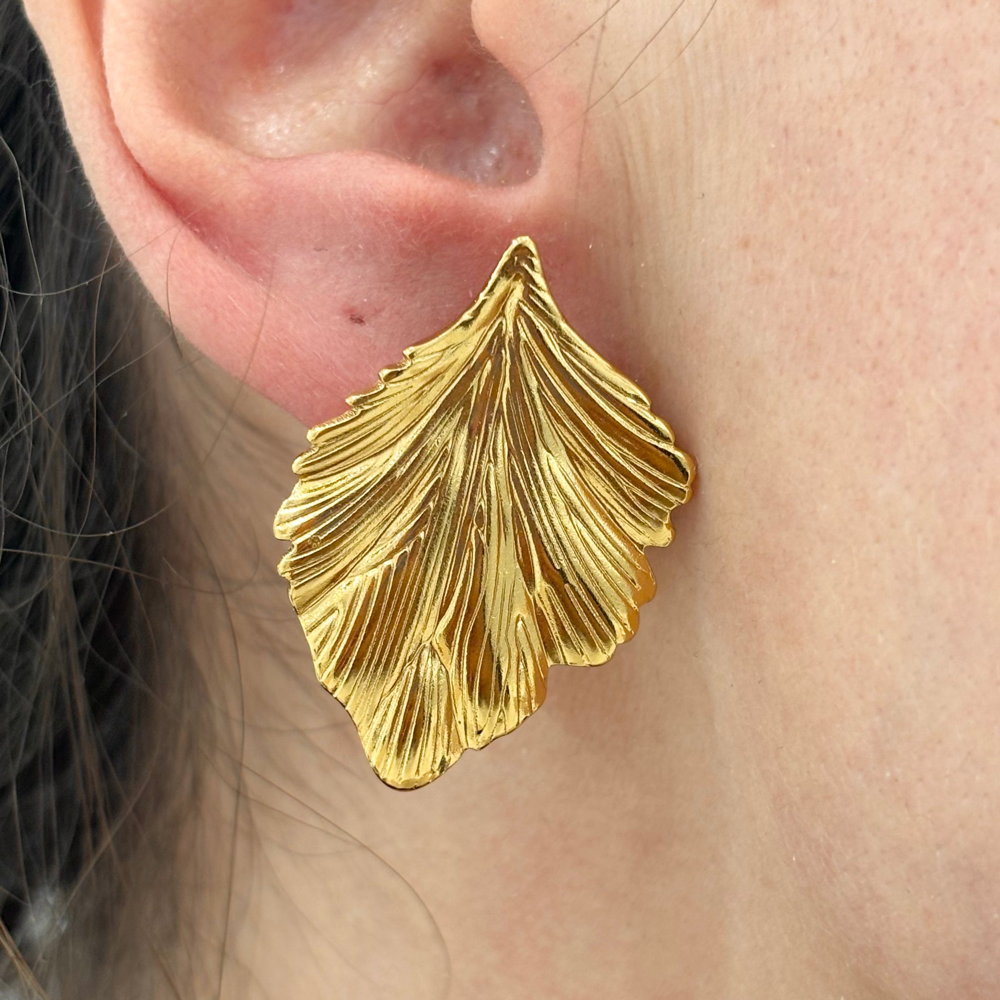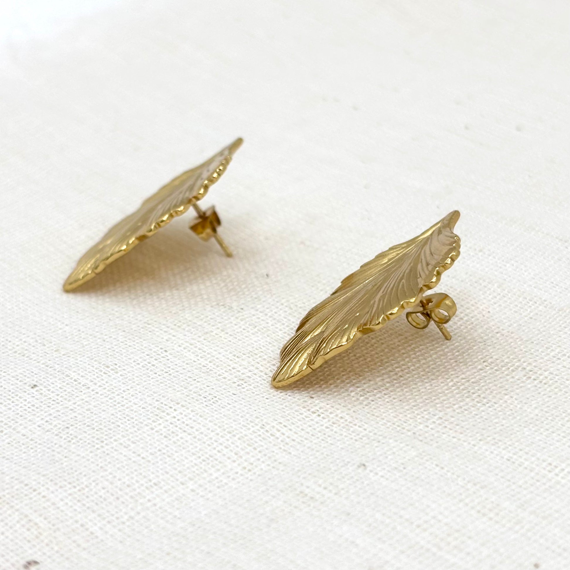 Boucles D'Oreilles Feuille Acier Inoxydable Doré