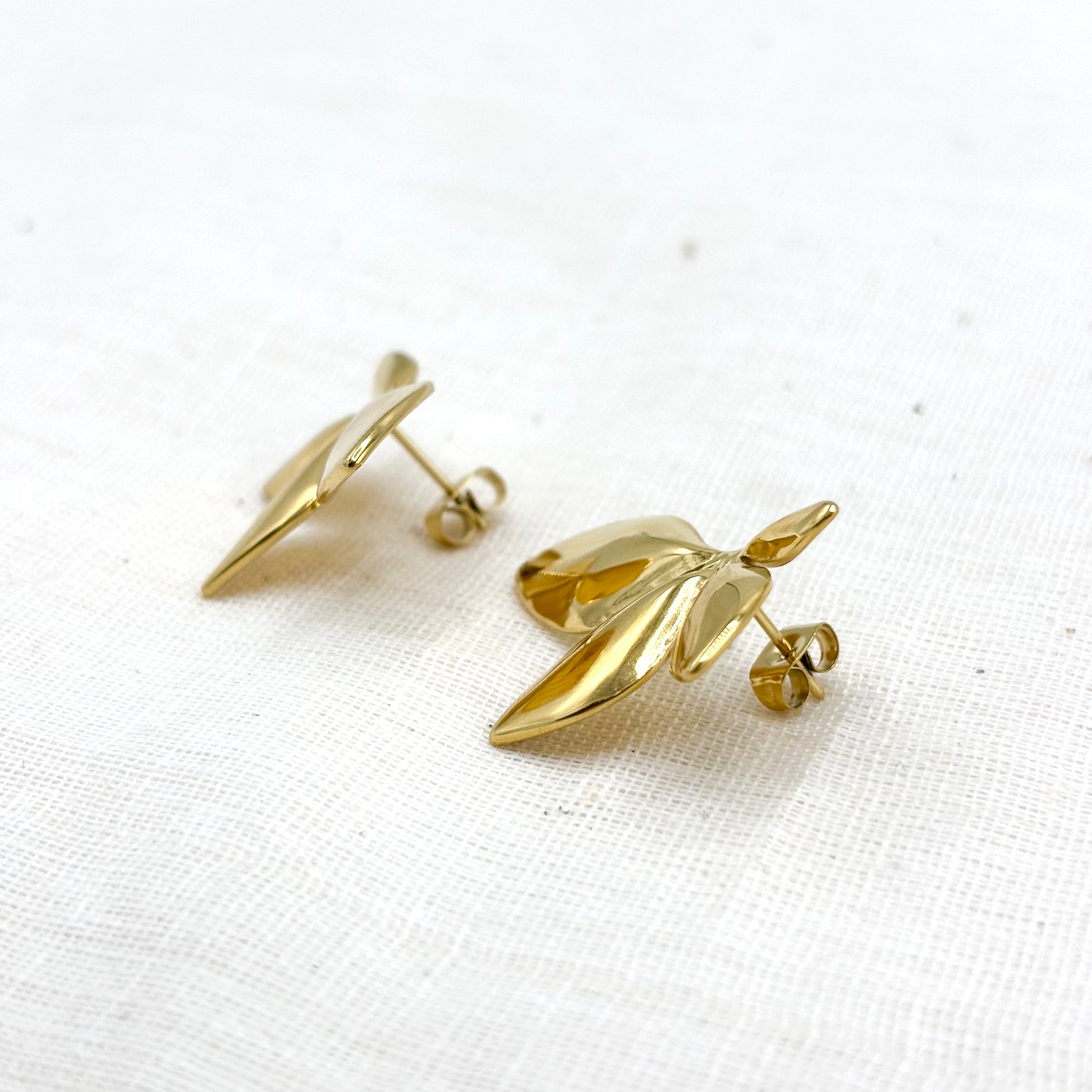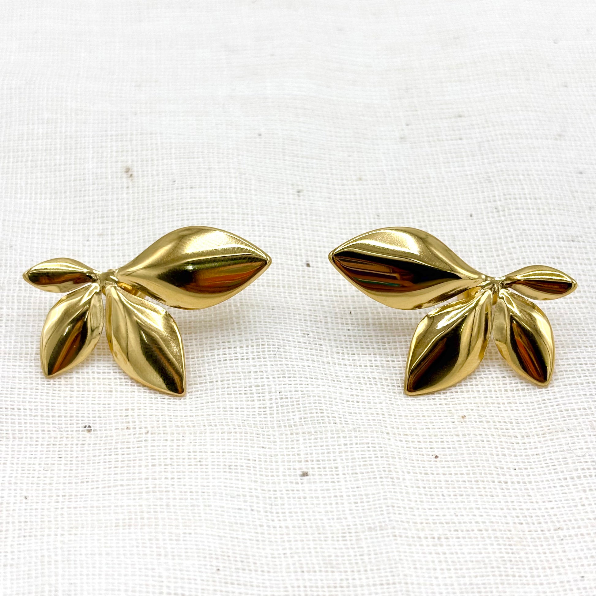 Boucles d'oreilles feuilles en acier inoxydable doré