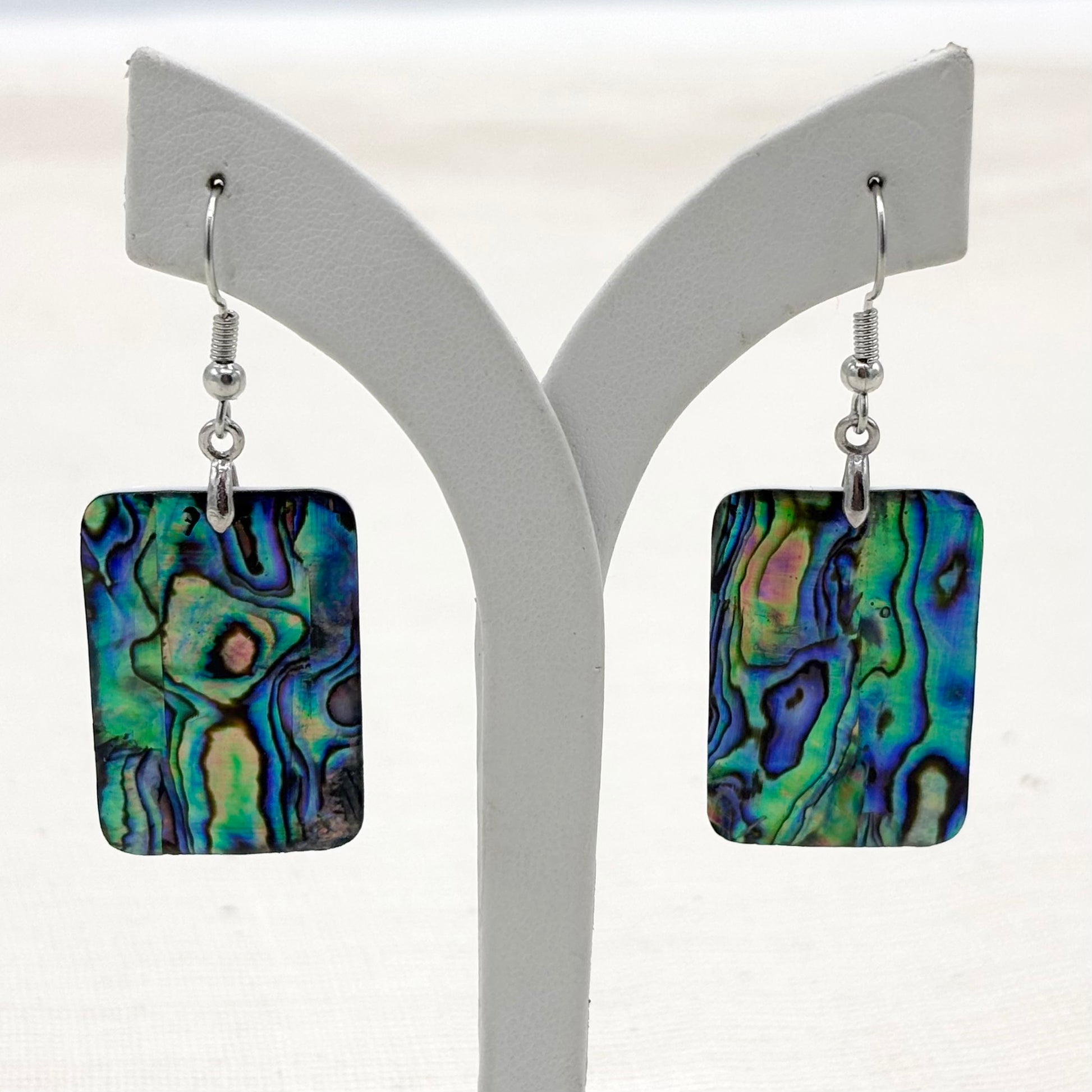 Boucles d'oreilles rectangle en nacre abalone à fermoirs crochet en laiton
