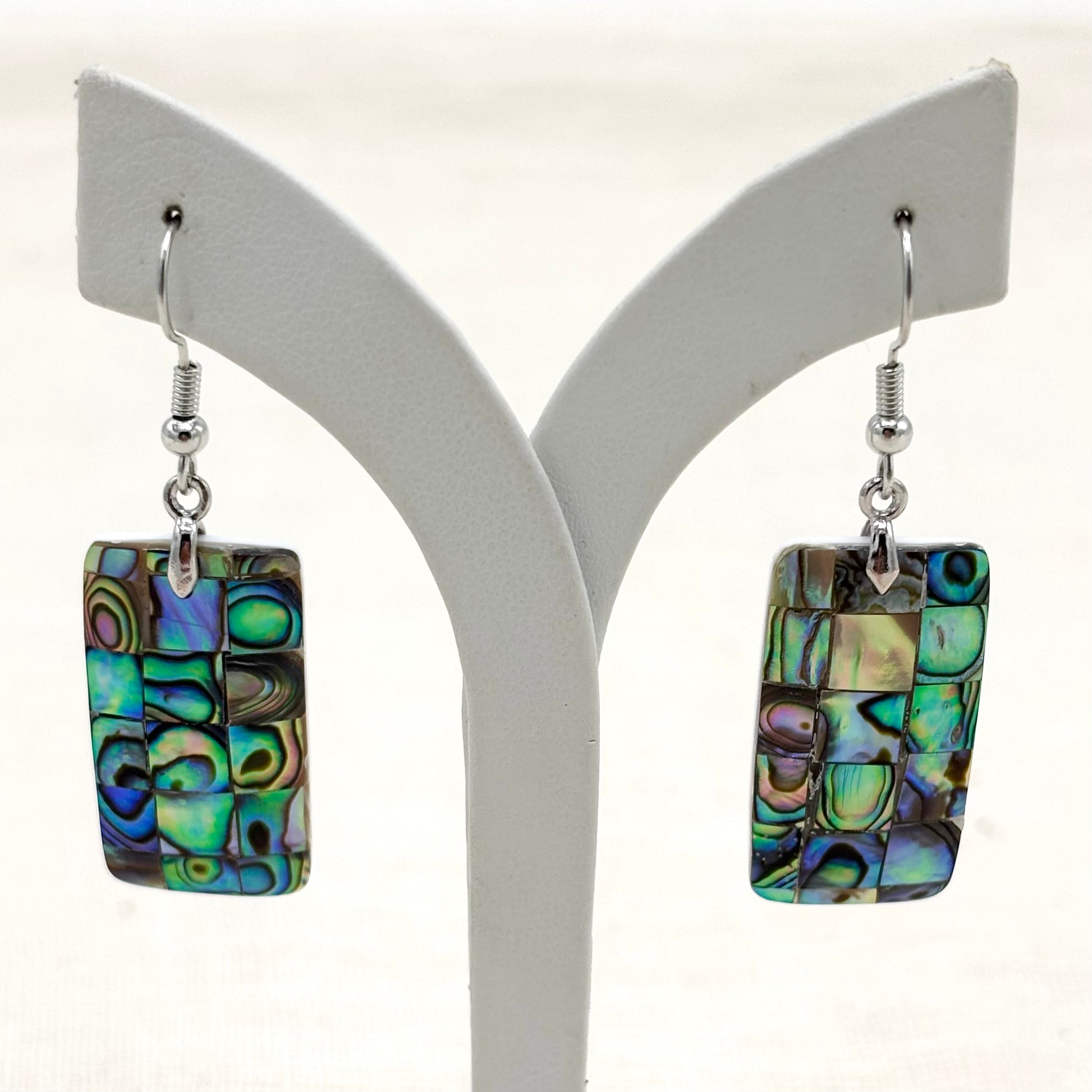 Boucles D'Oreilles Rectangle Nacre Abalone Laiton