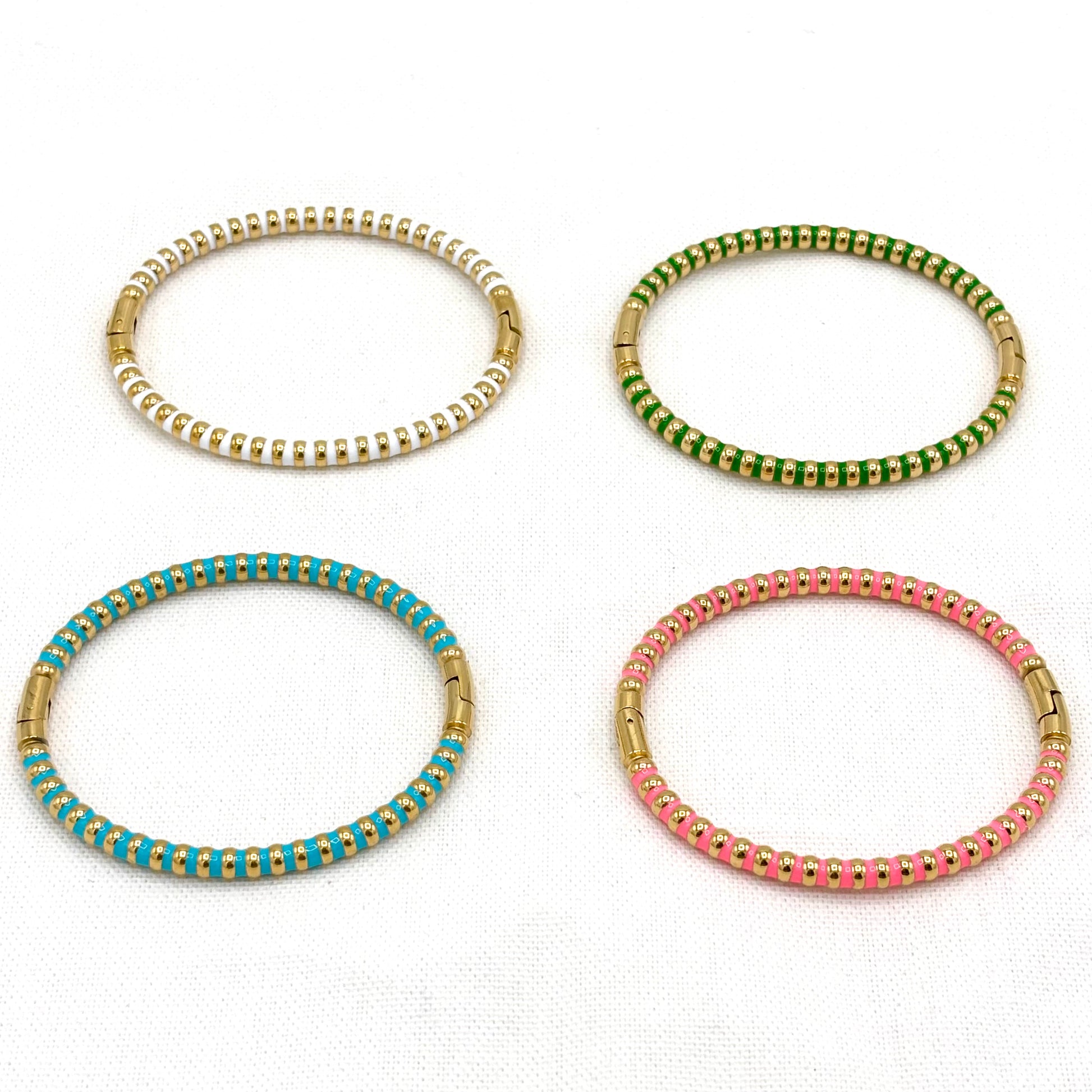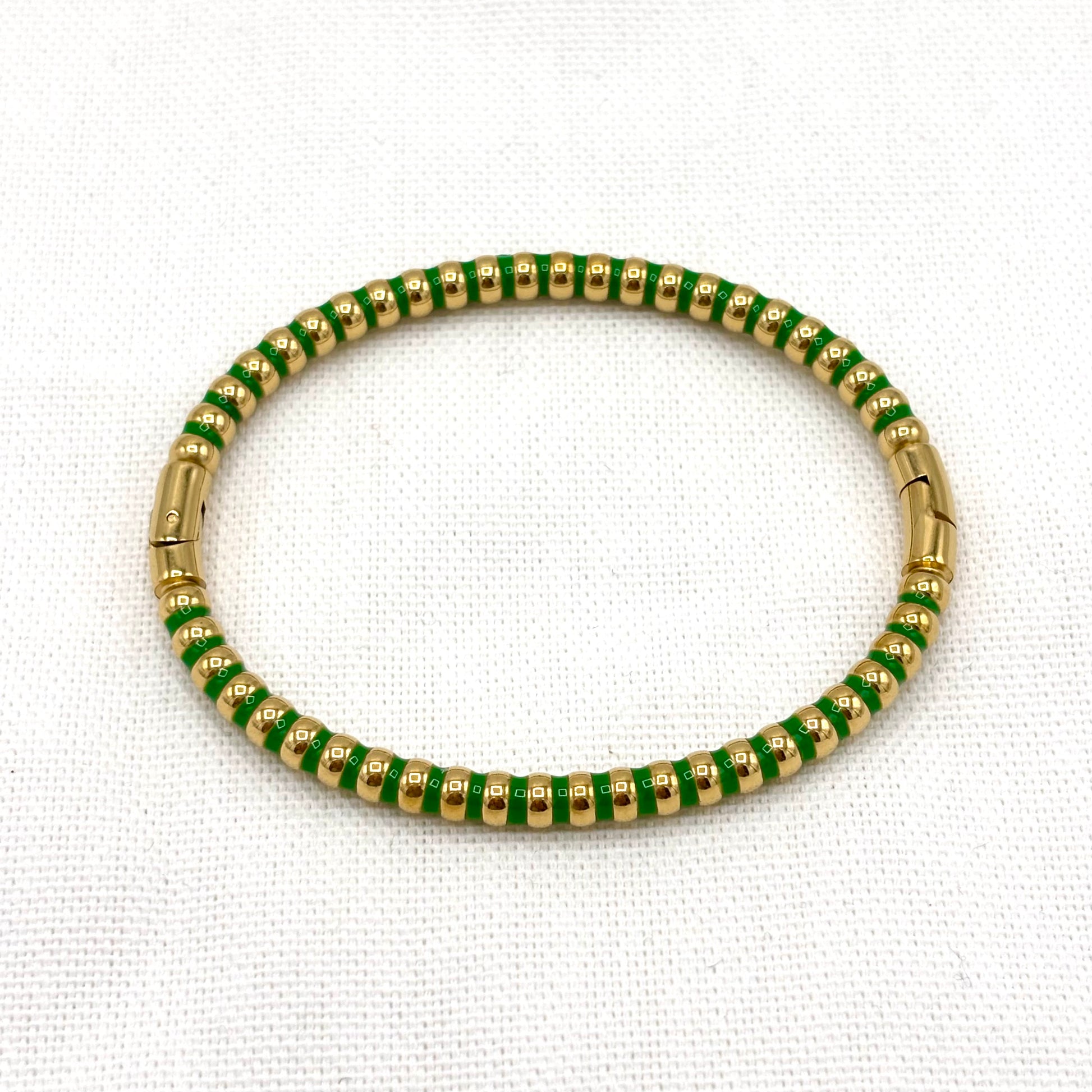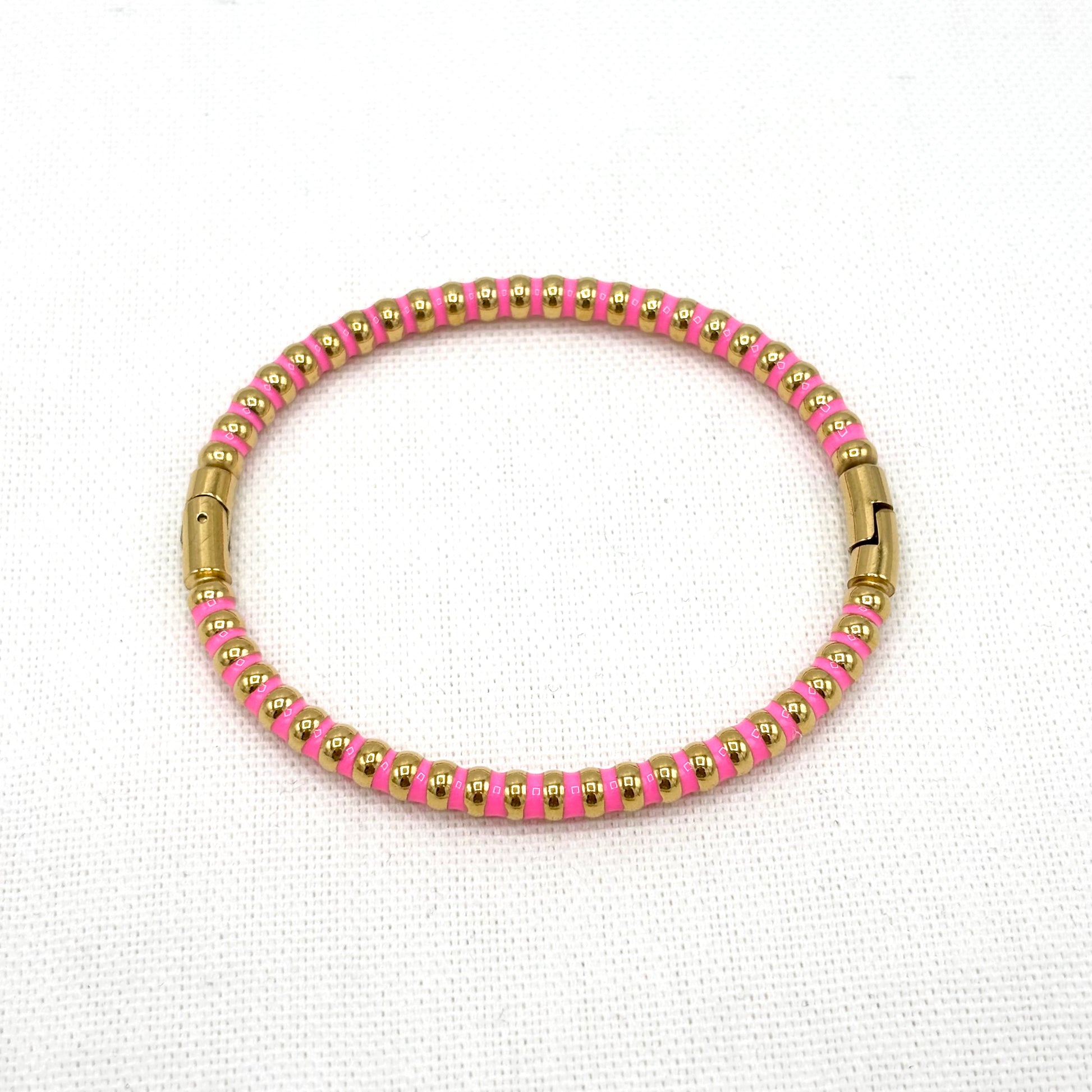Bracelet en acier inoxydable doré avec fermoir à cliquet.