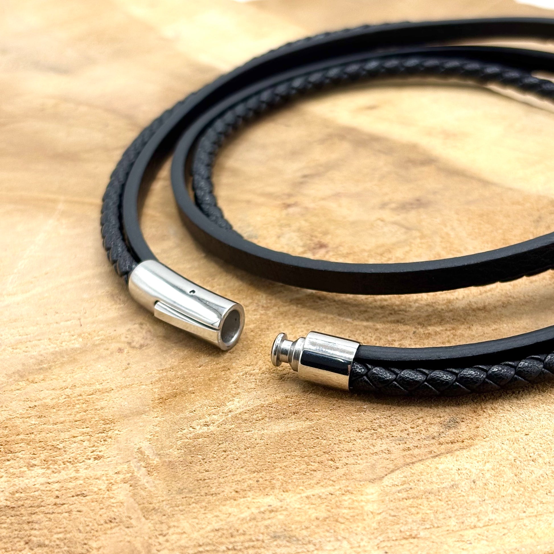Bracelet Homme Acier Inoxydable Cuir Tressé