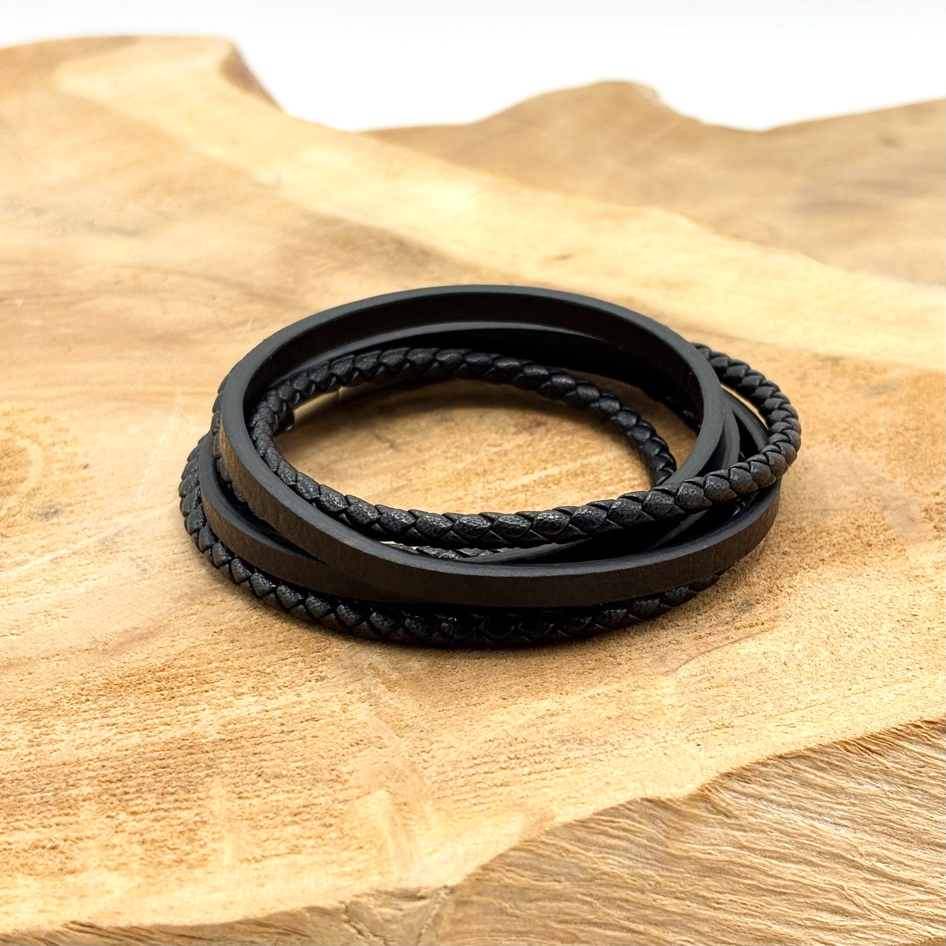 Bracelet en cuir à 2 rangs enroulés avec un fermoir en acier inoxydable.
