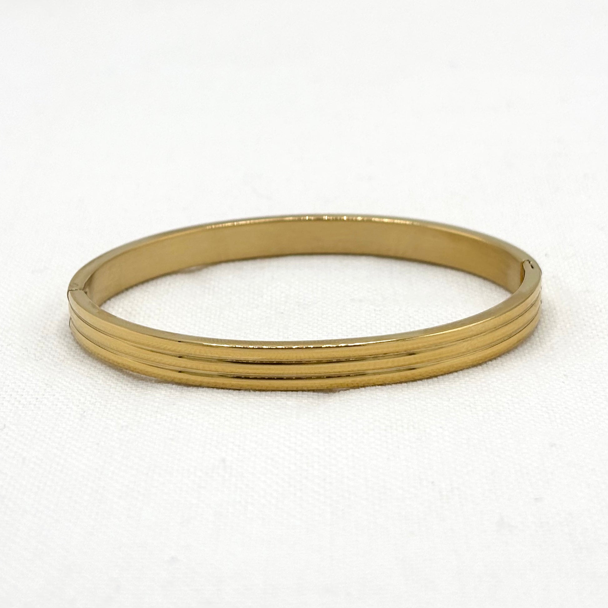 Bracelet Jonc Acier Inoxydable Doré Strié