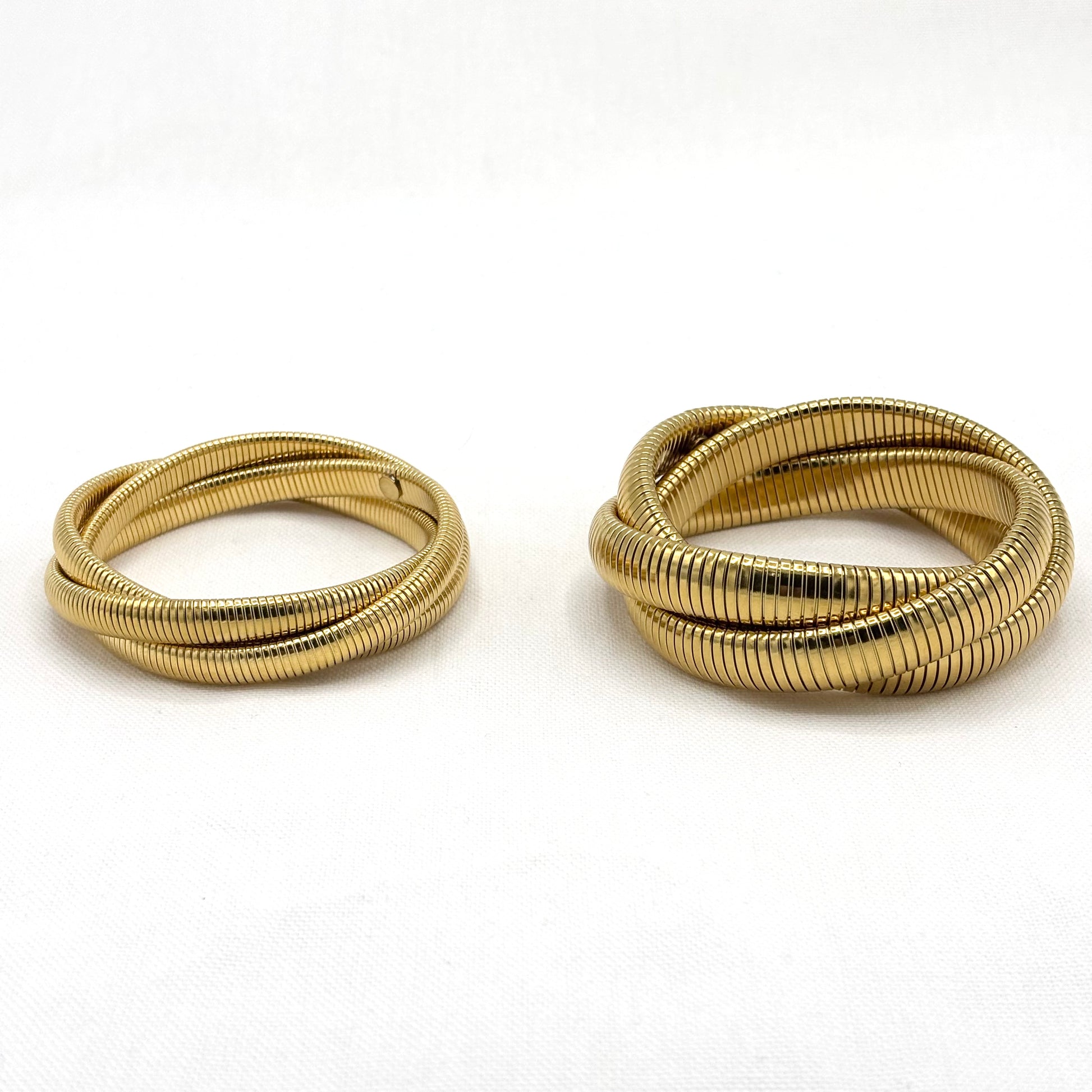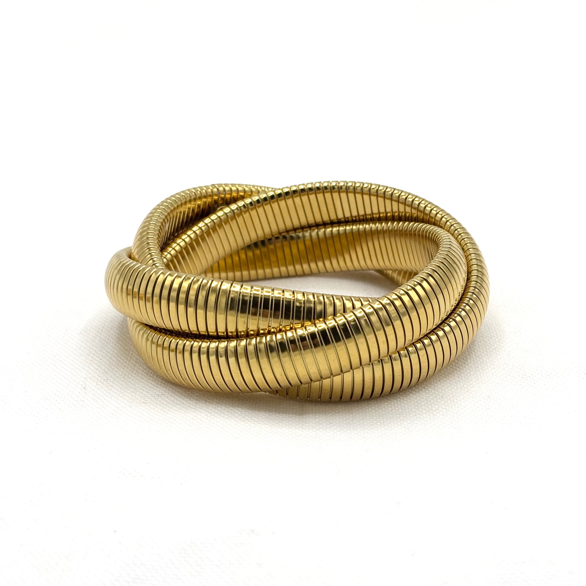 Bracelet jonc tubogas 3 rangs torsadés en acier inoxydable doré