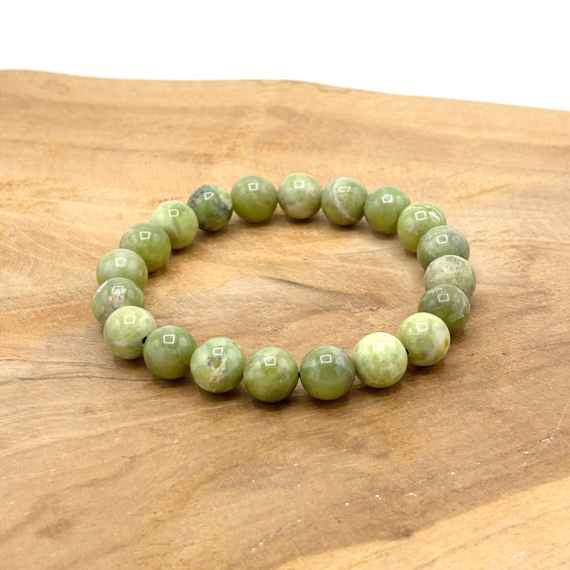 Bracelet en pierre naturelle d'olivine (variété de jade), disponible en 3 tailles: 6 mm, 8 mm ou 10 mm